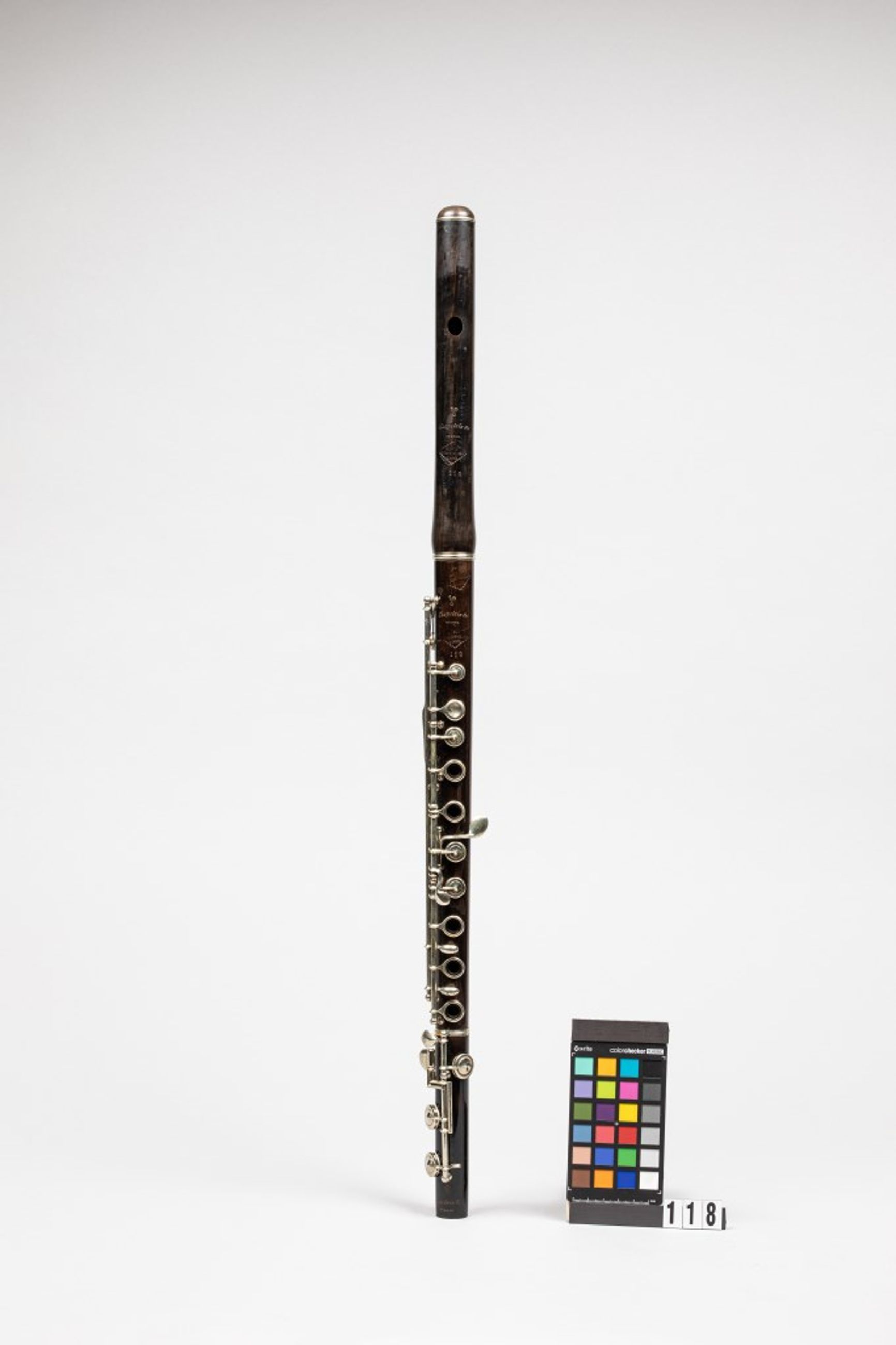 D'après les archives du Musée, l'instrument est entré dans les collections en 1897, en même temps que le flageolet inv. 116 et le piccolo inv. 117.