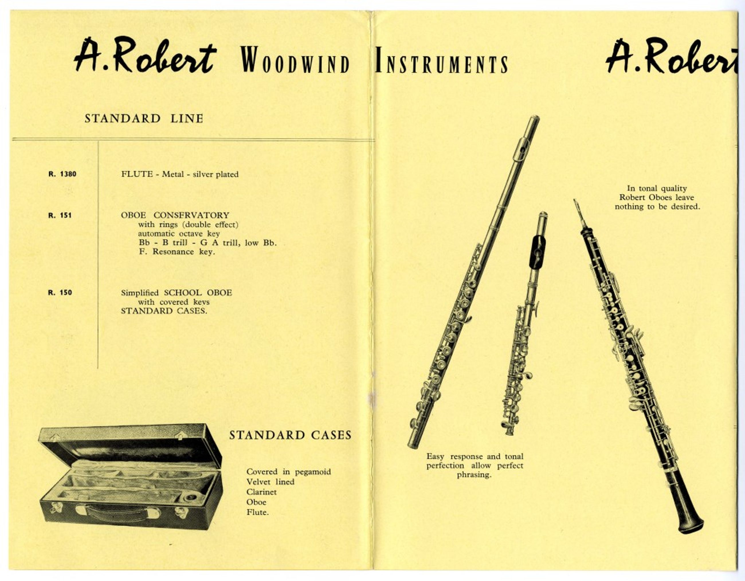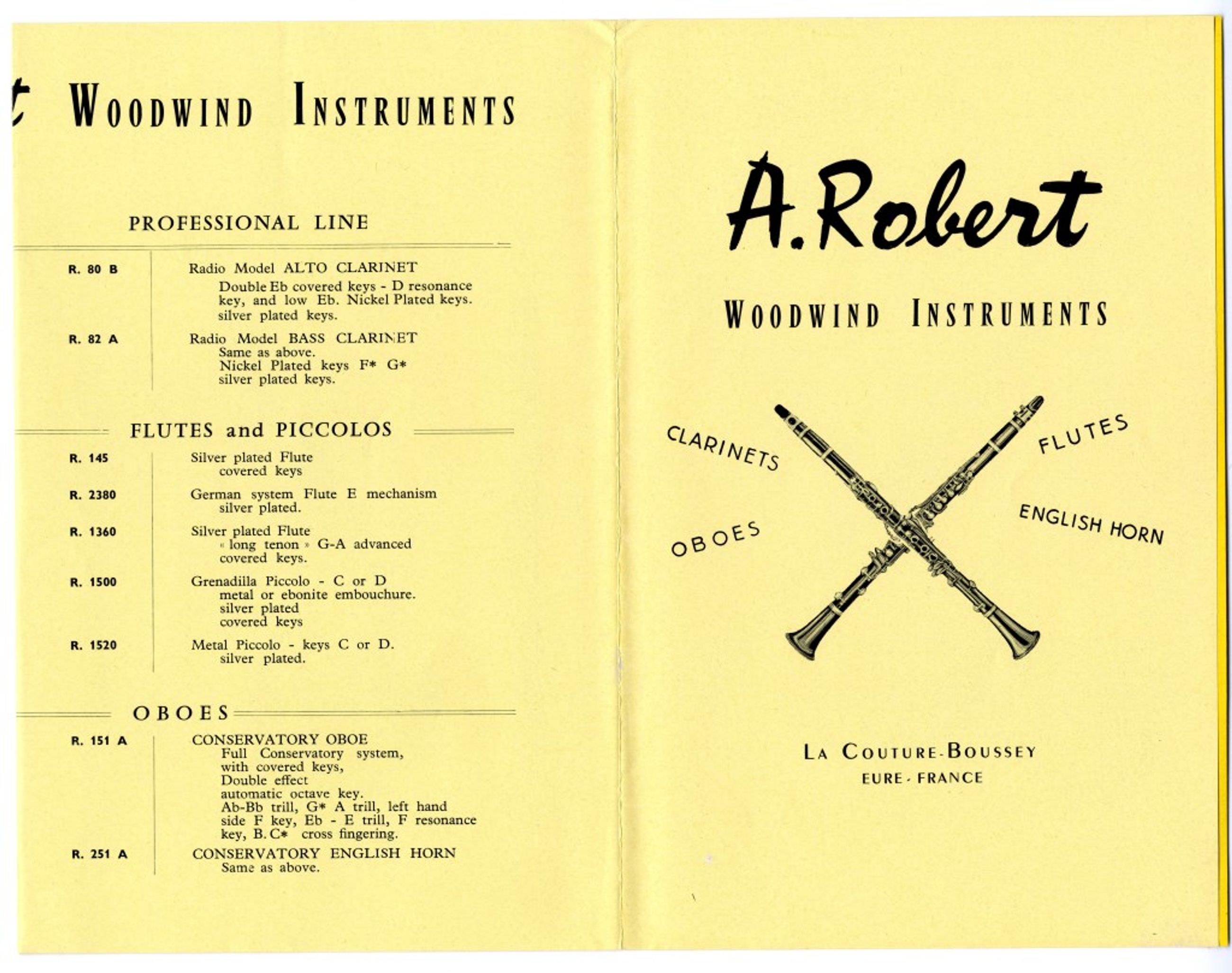 Brochure dépliable des établissements A. ROBERT, datant des années 1950-1960, en anglais et adressée à un public étranger.