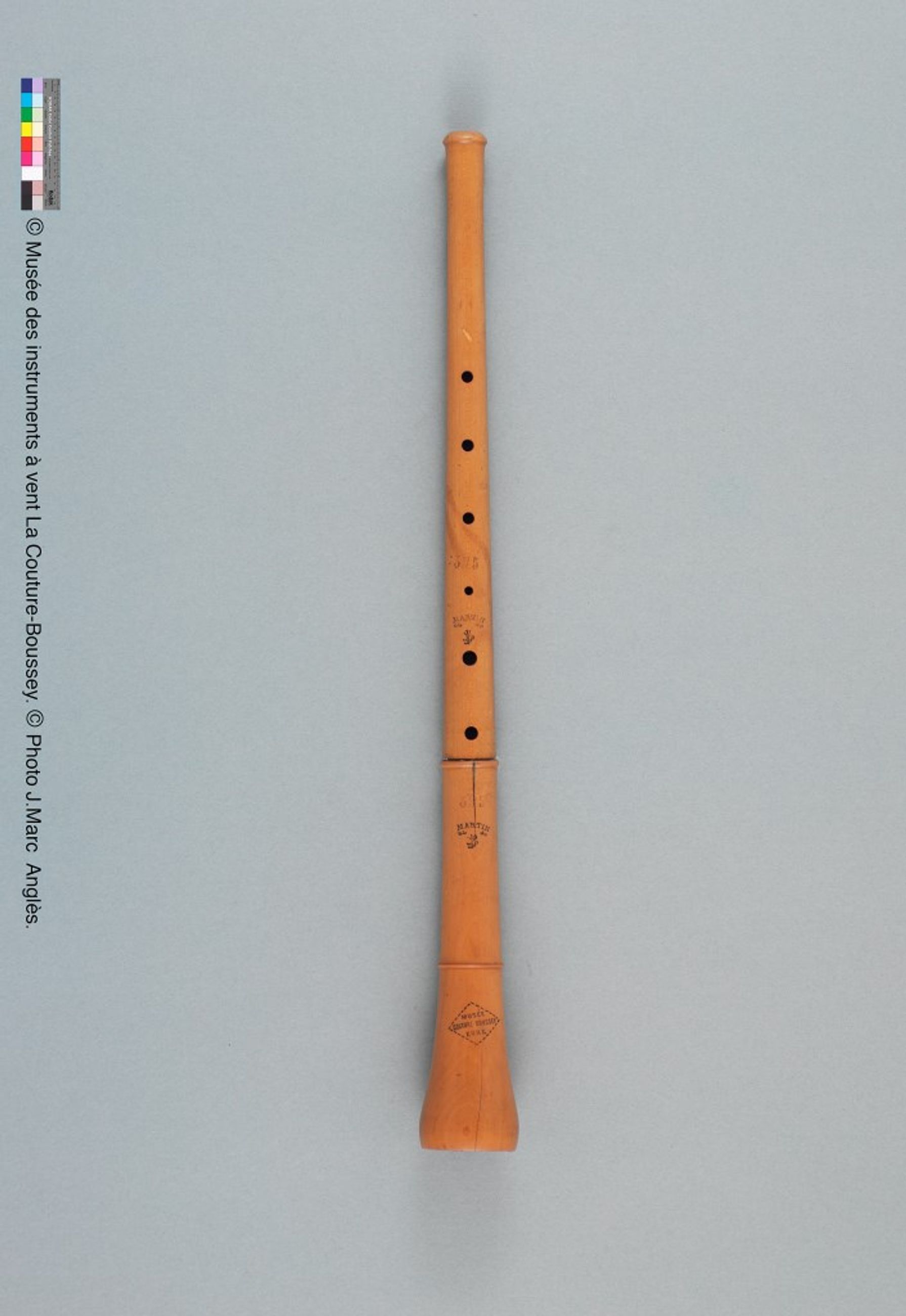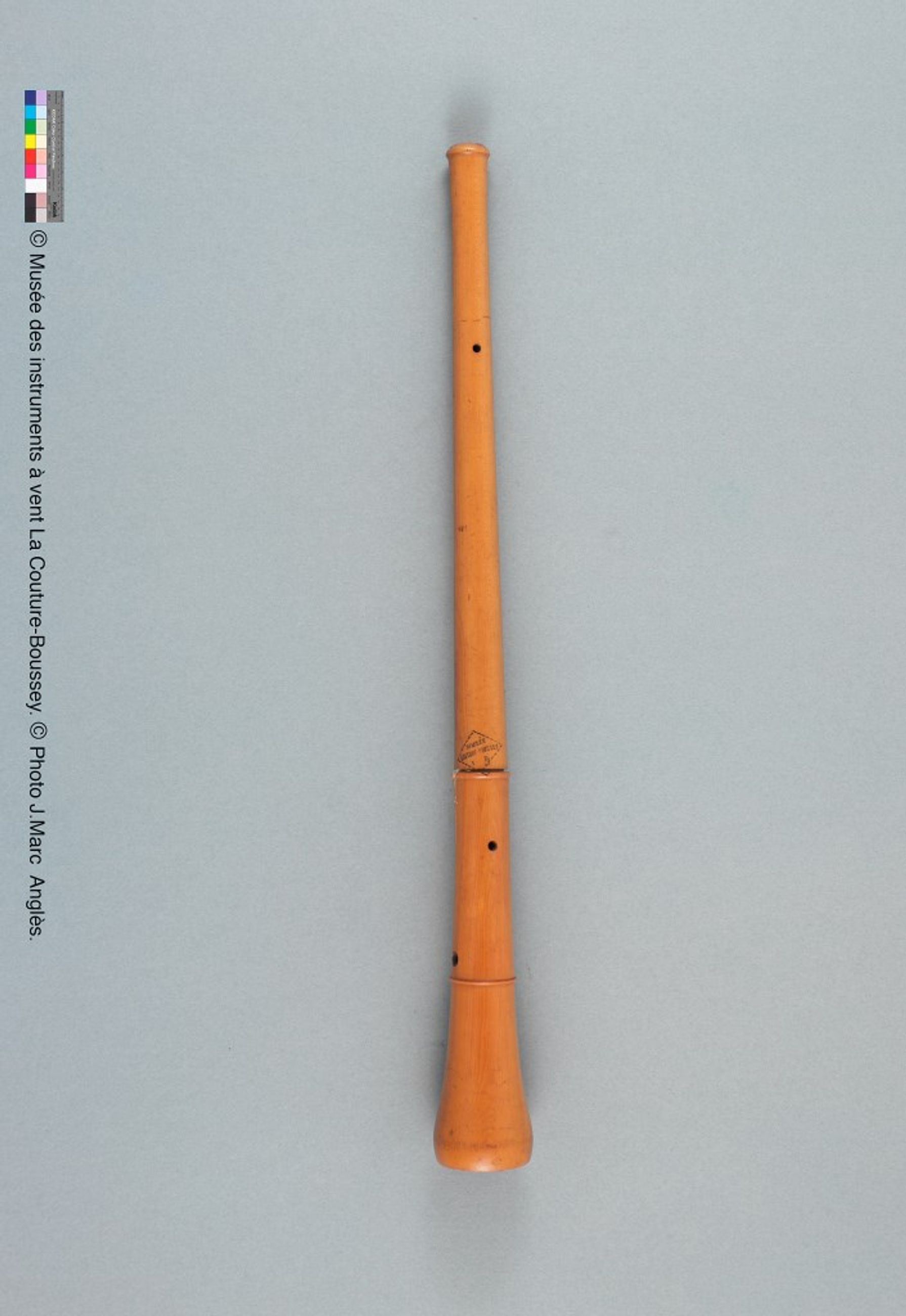 Corps et pavillon en buis, 6 trous de jeu, 3 trous d'accord sur le pavillon.