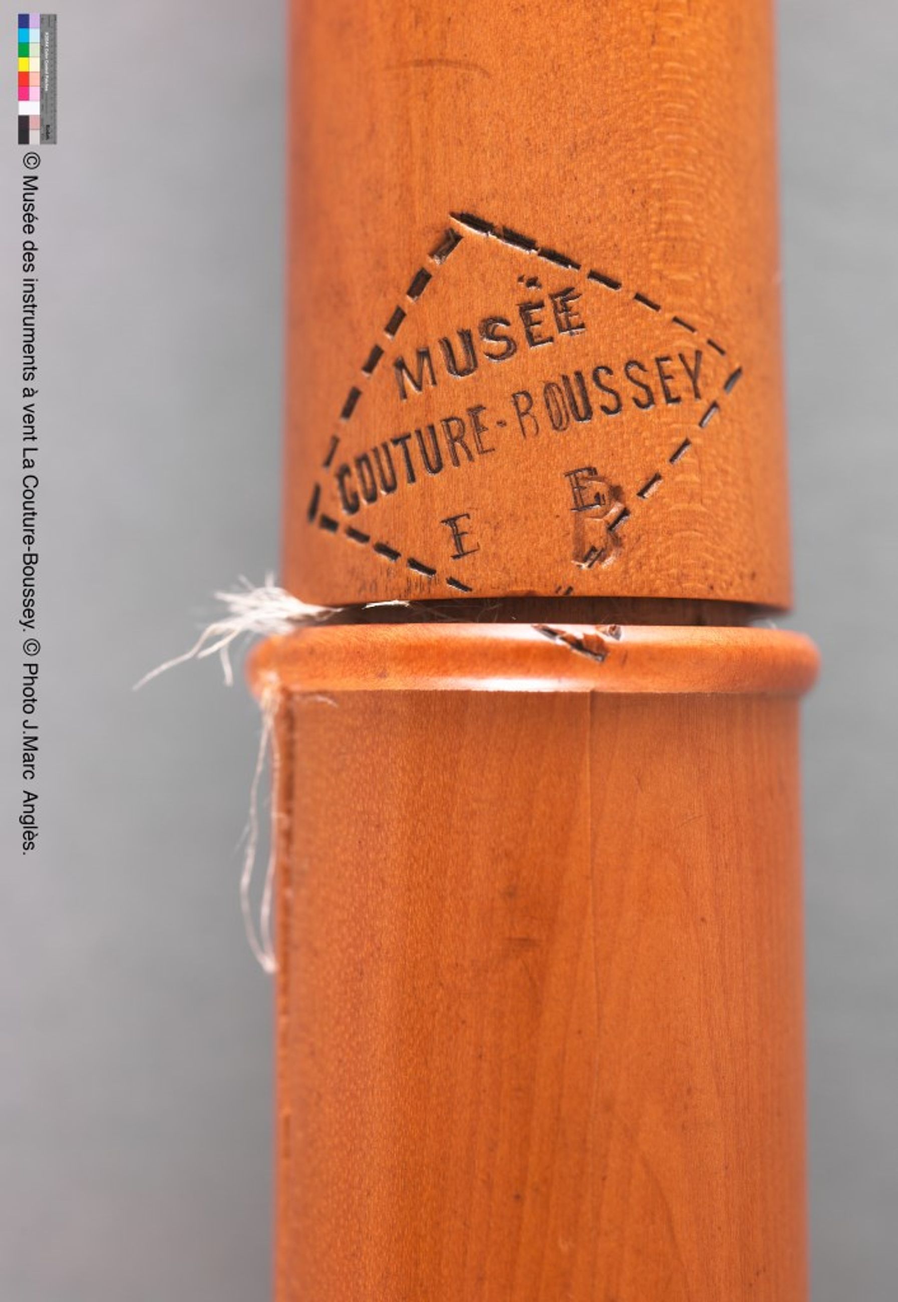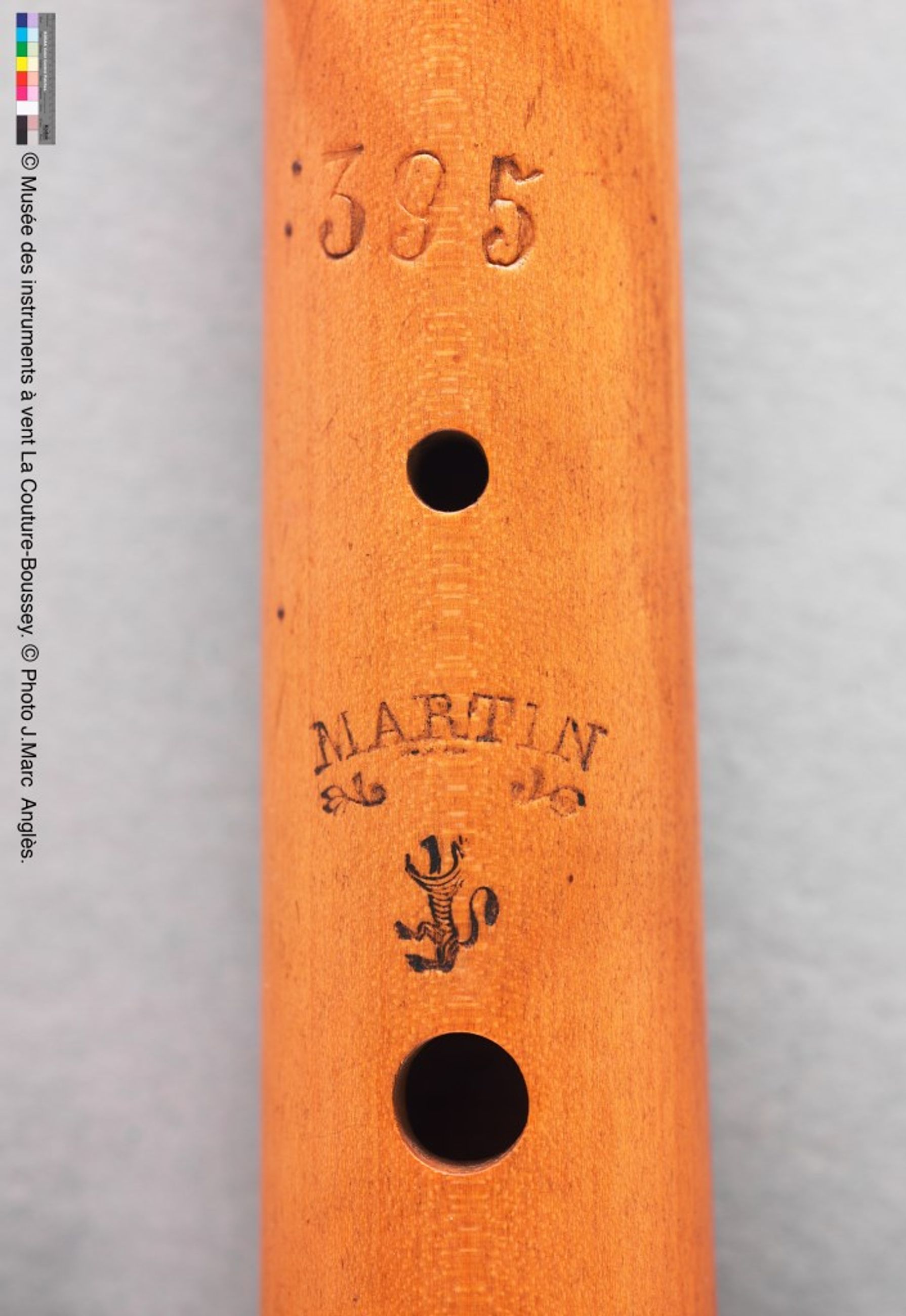 Estampilles "MARTIN / [fleur] [lion rampant] [fleur]" sur le corps et le pavillon, "(dans un losange en tiret) MUSÉE / COUTURE-BOUSSEY / EURE" sur le corps et le pavillon, marquages "395" sur le corps et le pavillon, "B" sur le corps".